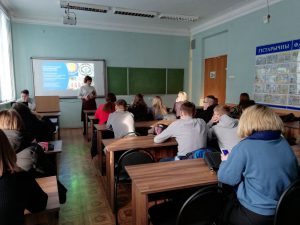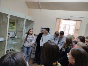 10 -11 классов УО «Средняя школа №39″ и УО » Средняя школа № 47. С.Н.Рожкова рассказала о специальностях факультета и ЦТ, а студент 4 курса Клещенко Никита рассказал о СНИЛ » Лаборатория по исследованию истории университета», «Друзья музея», «Тамга», «Белый Крыж», «Ваколица». Школьники посмотрели видео об археологической, педагогической и экскурсионной практиках, узнали о стажировках за рубежом, студенческих конференциях и много интересного о студенческой жизни. Ребята задавали вопросы о вступительных экзаменах и проходных баллах.Преподаватель-стажер кафедры философии и специальных исторических дисциплин Древило О.О. провела для школьников увлекательную экскурсию по археологическому музею-лаборатории.