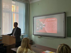 📌Председатель Студсовета факультета, Царикова Анастасия, поделилась информацией о специальности ЛО, а также рассказала об активностях факультета и университета. Также провела экскурсию в лингафонный кабинет
