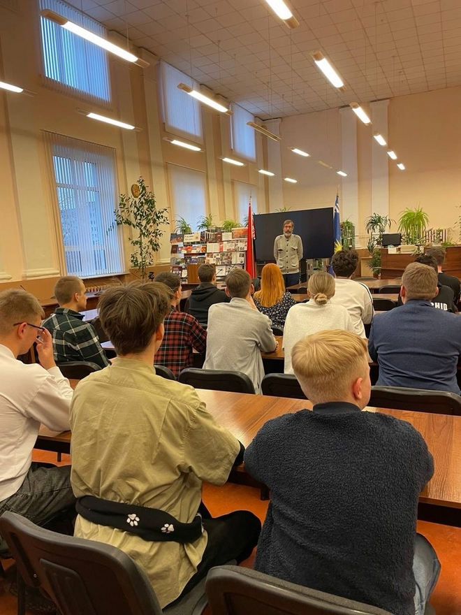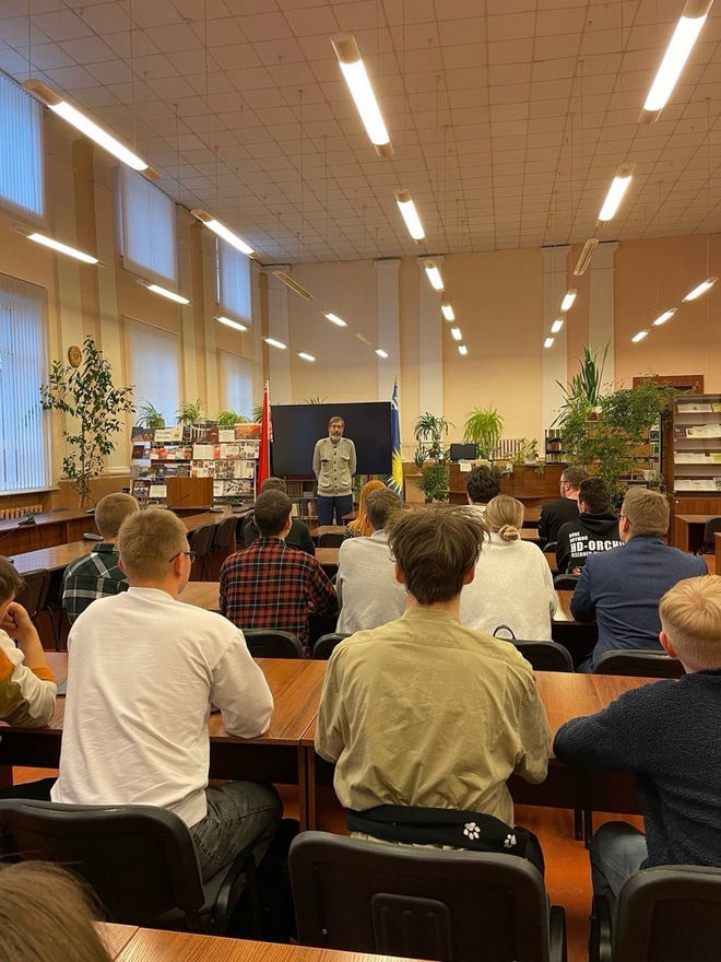 4 декабря студенты факультета истории и межкультурных коммуникаций в читальном зале корпуса 2 просмотрели фильм ОНТ "БЕСЫ", посвящённый политической ситуации в Республике Беларусь. Комментарии к фильму сделал старший преподаватель кафедры истории Беларуси Цацарин В. В.