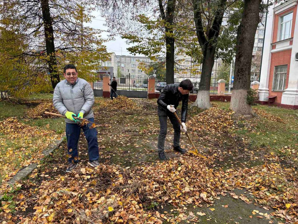 Очень активно, энергично, с настроением студенты убирали листву около корпуса 2 университета и между учебными корпусами 2 и 3. В работах также принимали участие сотрудники службы АХЧ.